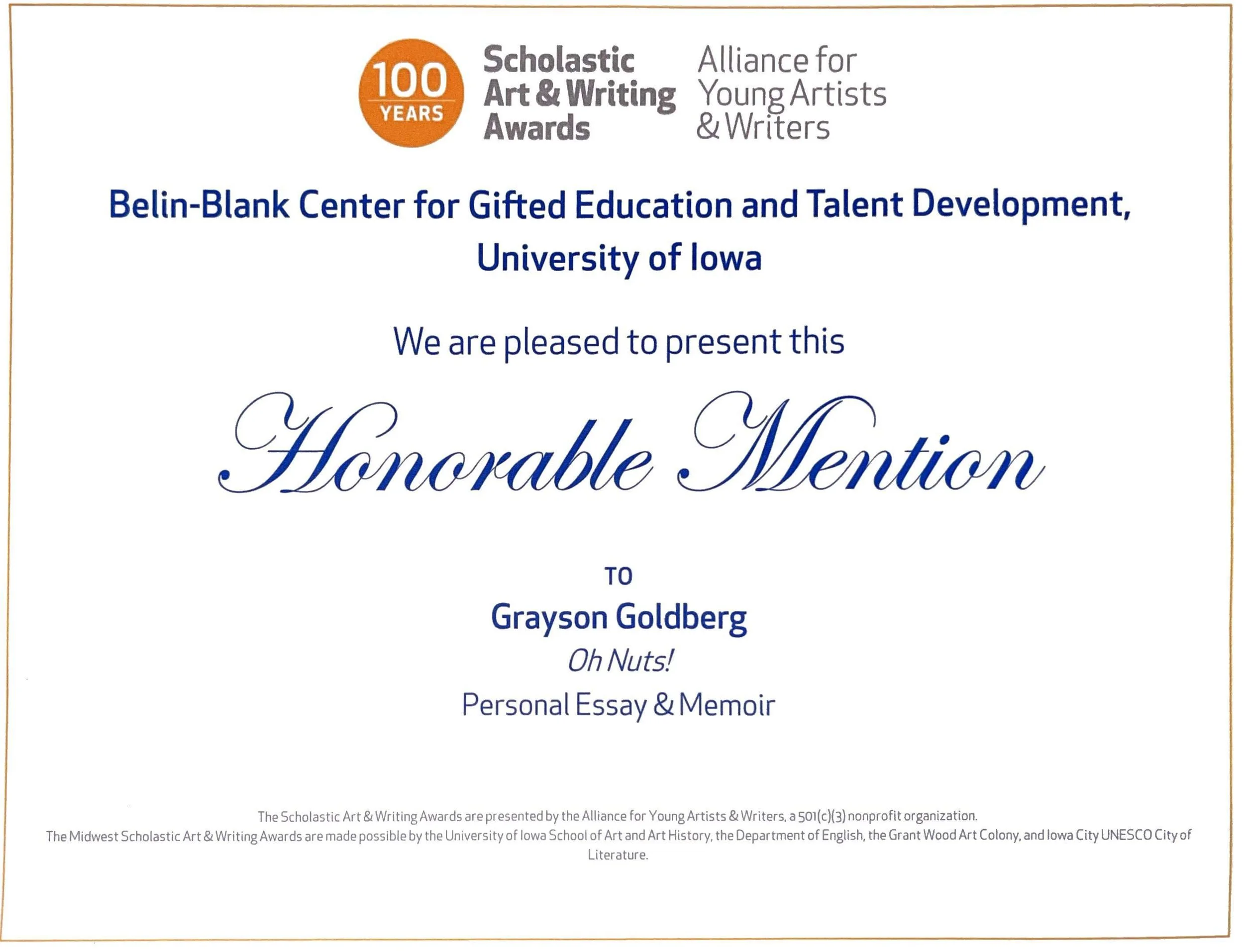 Scholastic Art & Writing Awards, Honorable Mention, 2021
